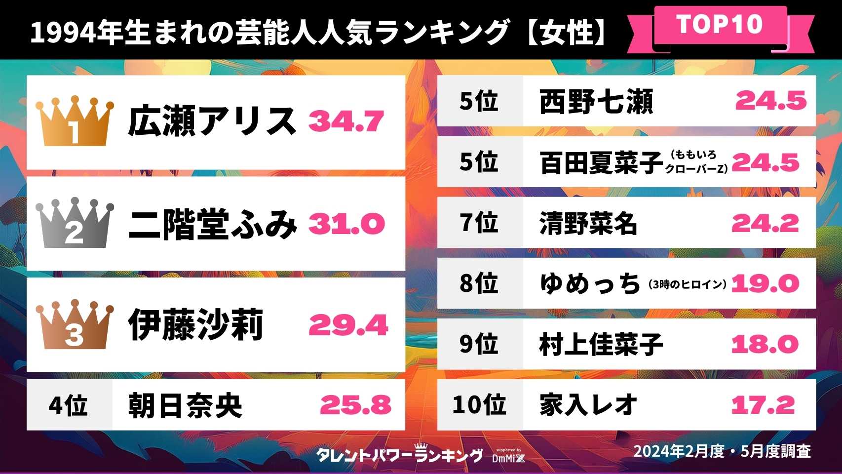 1994年生まれの芸能人人気ランキング【女性】
