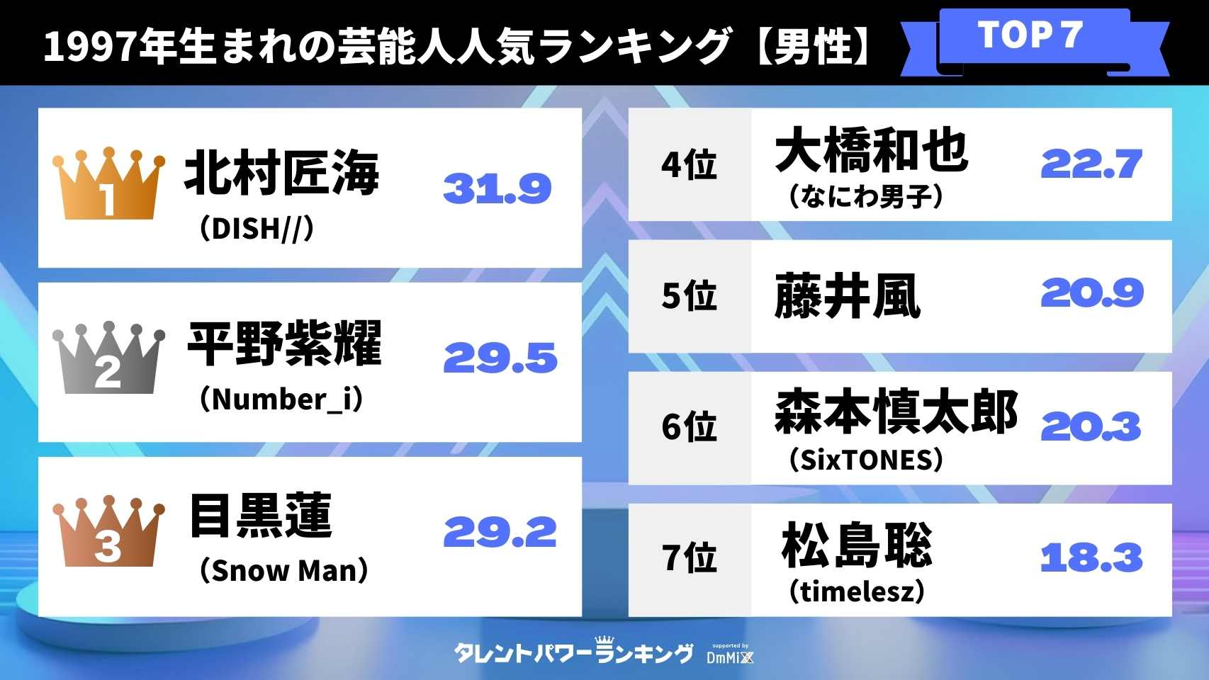 1997年生まれの芸能人人気ランキング【男性】
