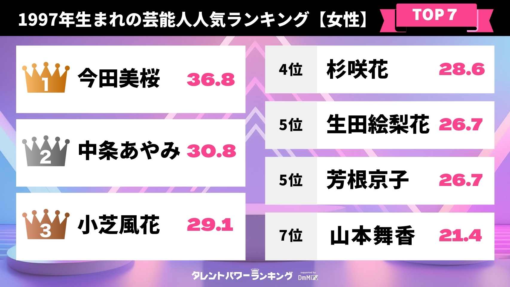1997年生まれの芸能人人気ランキング【女性】