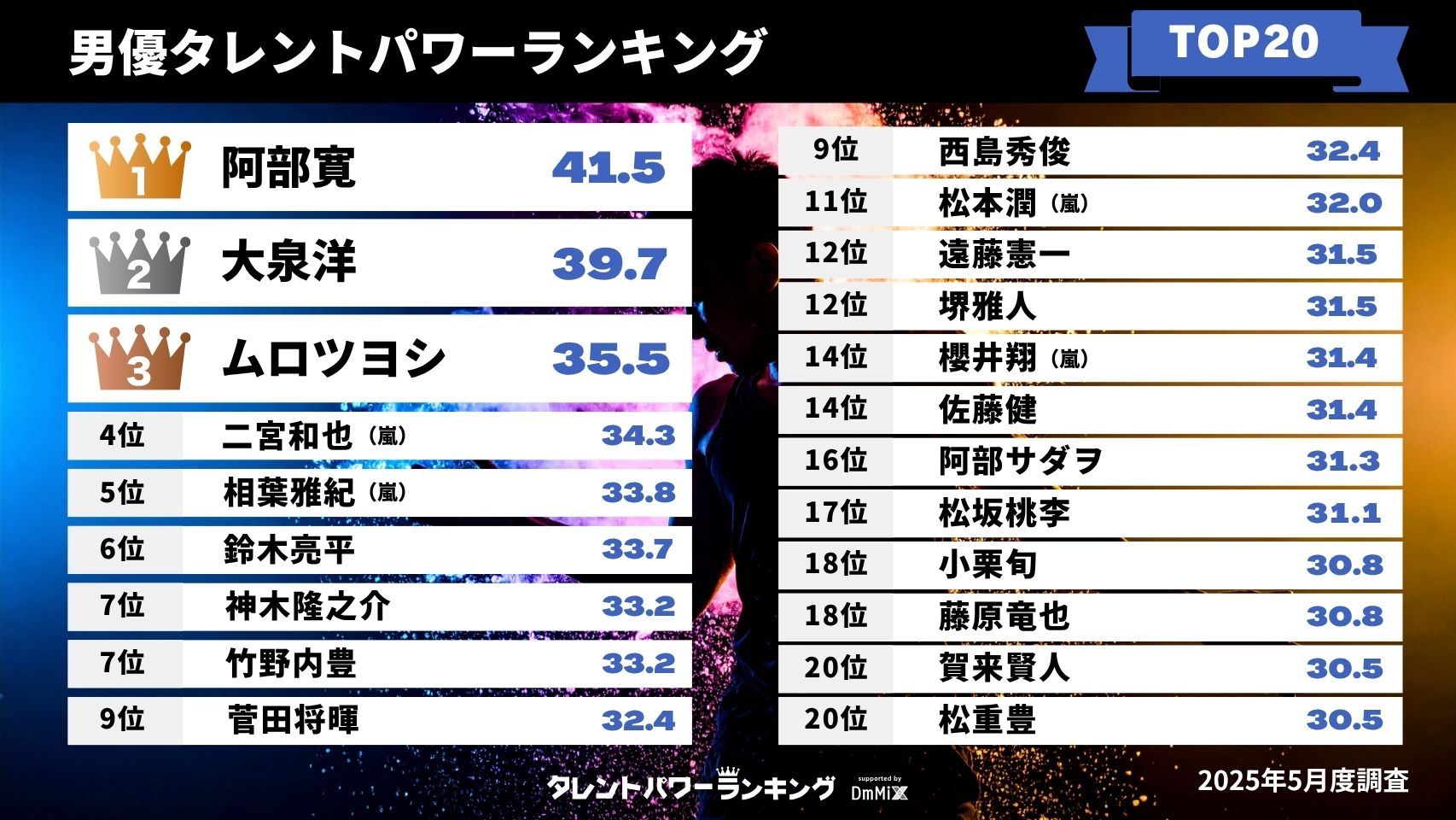 二宮和也・相葉雅紀がトップ5入り