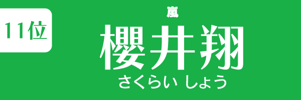 男女全体ジャニーズランキングでは二宮和也に次ぐ2位ですが、F1層では嵐のメンバーでトップのスコアをマーク。