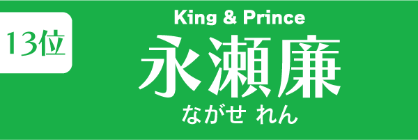 11位には2人が並びました。1999年4月3日生まれ、23歳。2018年にKing&PrinceのメンバーとしてCDデビュー。2021年にはドラマ『ドラゴン桜』(TBS系)に出演して注目を集めました。