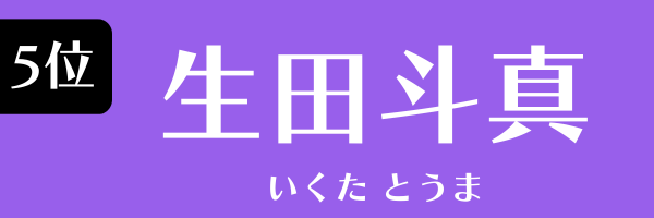 5位は生田斗真です。パワースコアの全体順位では88位ですが、F1層ではトップ10入りして8位で、男女全体1位の大谷翔平(F1層では9位)のスコアを上回っています。