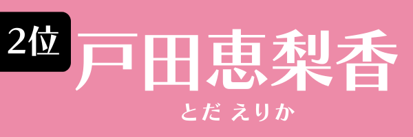 F1層でのスコアでは新垣結衣が2位、橋本環奈が3位、日本テレビの水卜麻美アナが4位に入っていますが、この3人は男女全体とのスコア差が小さいので、F1層のスコアが特に高くなっている戸田恵梨香が2位となりました(男女全体では17位)。2024年1月から「NURO光」のCMに起用されています。