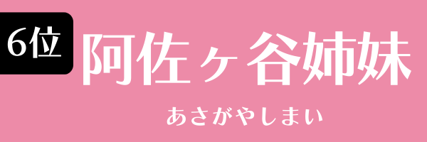 6位はお笑いコンビの阿佐ヶ谷姉妹です。男女全体で27位、F1層では12位(前回27位から上昇)で石原さとみ、川口春奈の2人と同スコアで並んでいます。マイペースな存在感が、幅広い年代で支持されています。