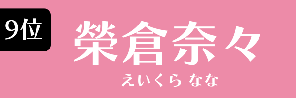9位にランクインしたのは榮倉奈々です。男女全体では68位、F1層では30位。2024年からみずほ銀行、MTGの美容ブランド「ReFa」(山田裕貴と共演)の2本の新CMに起用されて注目を集めています。