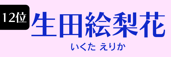 | 12位 | 生田絵梨花 | 22.9 | 2022年08月度 |