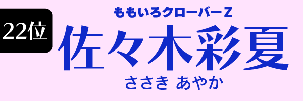 人気の女性アイドル個人ランキング第22位は佐々木彩夏(ももいろクローバーZ)です。