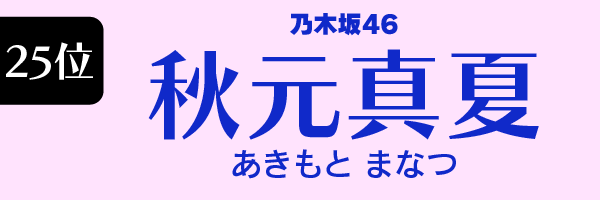 人気の女性アイドル個人ランキング第25位は同率で2名。1人目は秋元真夏です。