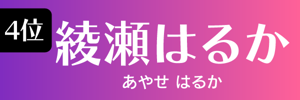 Z世代に支持されている女性タレント第4位 綾瀬はるか