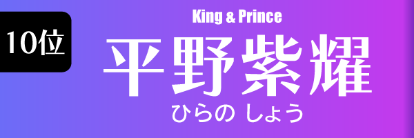 Z世代に支持されている男性タレント 第10位 平野紫耀(King&Prince)