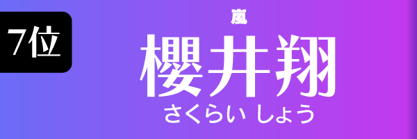 Z世代に支持されている男性タレント 第7位 櫻井翔(嵐)