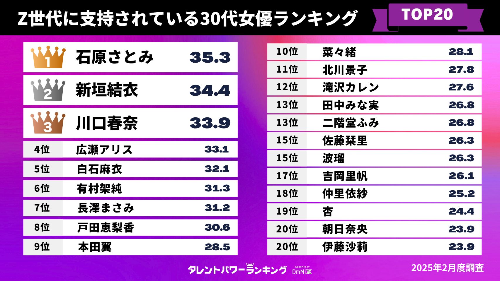 Z世代の支持が高い本田翼・白石麻衣がトップ10入り