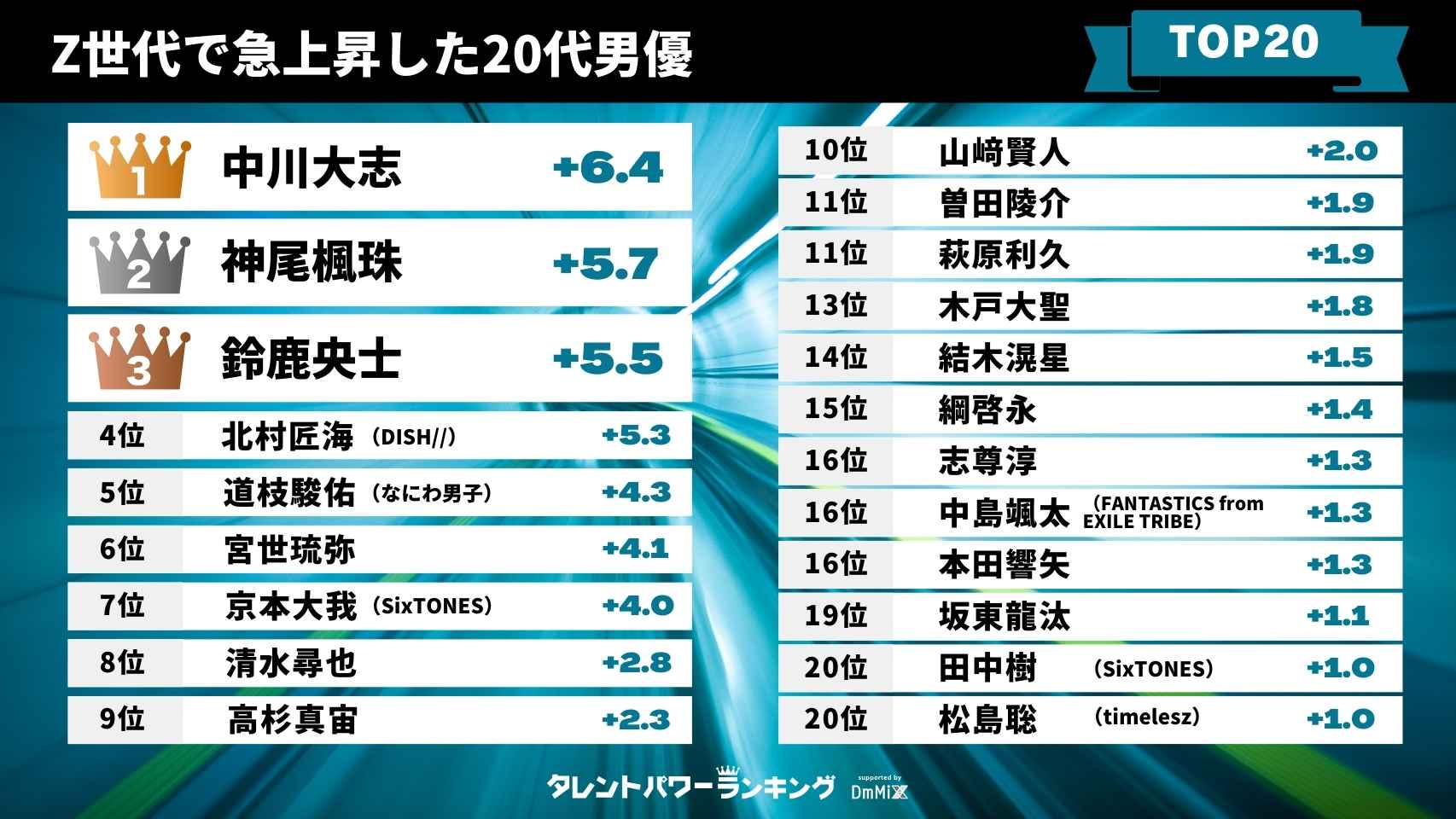 特にZ世代で上昇した中島颯太・本田響矢・曽田陵介
