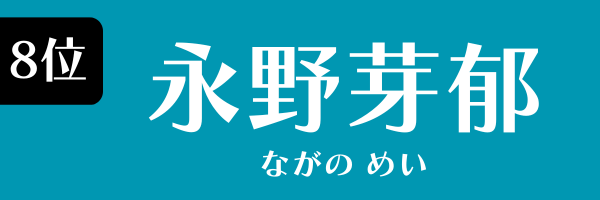 8位は永野芽郁がランクイン。1999年9月24日生まれ、東京都出身。2018年に朝ドラ『半分、青い。』(NHK)でヒロインを演じました。
