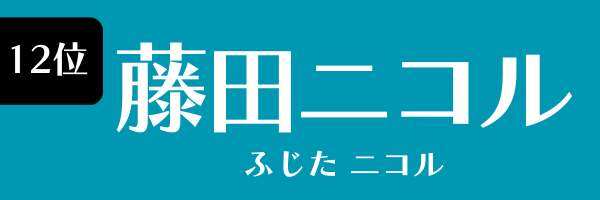 12位はモデル・タレントとして活躍している藤田ニコル。1998年2月20日生まれ、ニュージーランド出身。雑誌『nicola』の専属モデル(~2014年)を経て、『Popteen』の人気モデル(2017年卒業)としてテレビ番組出演が増えました。