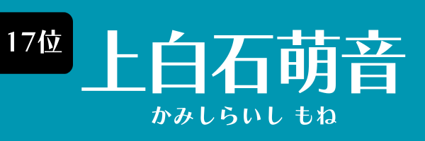 16位と17位には上白石姉妹が揃ってランクイン。17位は姉の上白石萌音です。1998年1月27日生まれ、鹿児島県出身。2021年にはNHK朝ドラ『カムカムエヴリバディ』でヒロインのひとりを演じました。