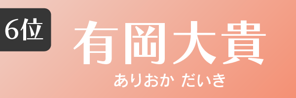 | 6位 | 有岡大貴 | 18.3 | 2022年11月 |