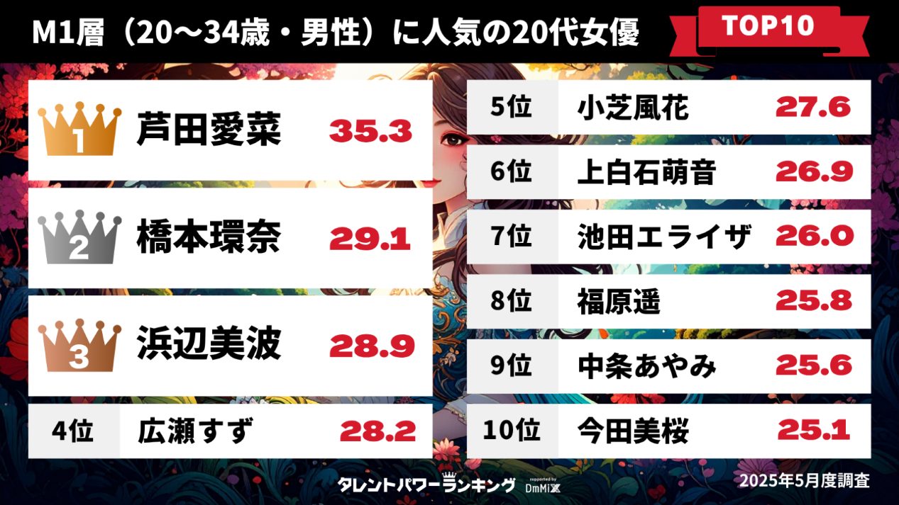 ※タレントの年齢は2025年8月15日時点M1層で小芝風花・池田エライザ・今田美桜が順位上昇
