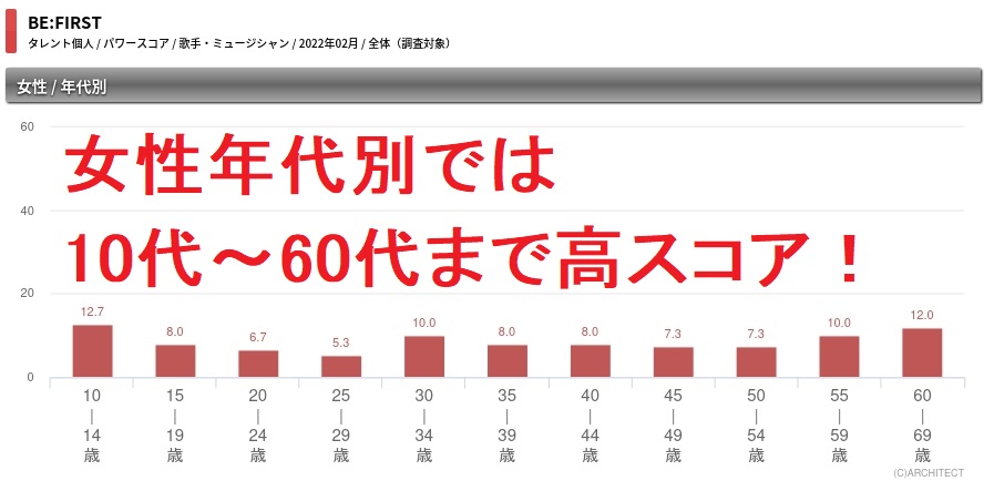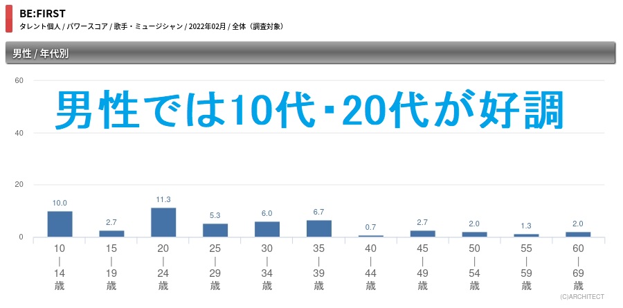 - BE:FIRST パワースコア(2022年2月) 男性×年代別