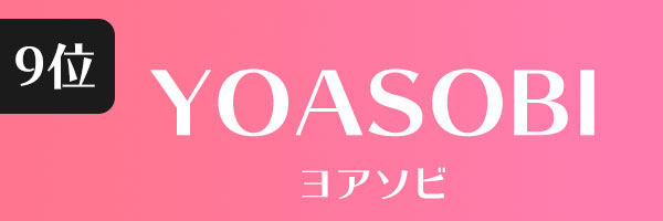 9位は作曲を手がけるAyaseとボーカルのIkuraが小説を音楽にするユニットYOASOBI。