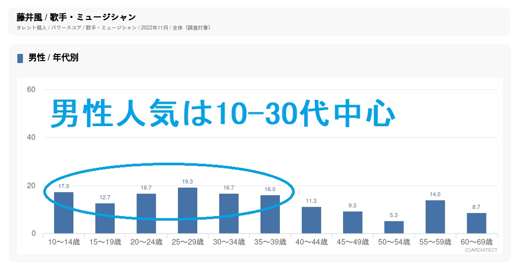 (こちらは、2022年11月時点の、タレントパワースコア (左)女性×年代別、(右)男性×年代別)