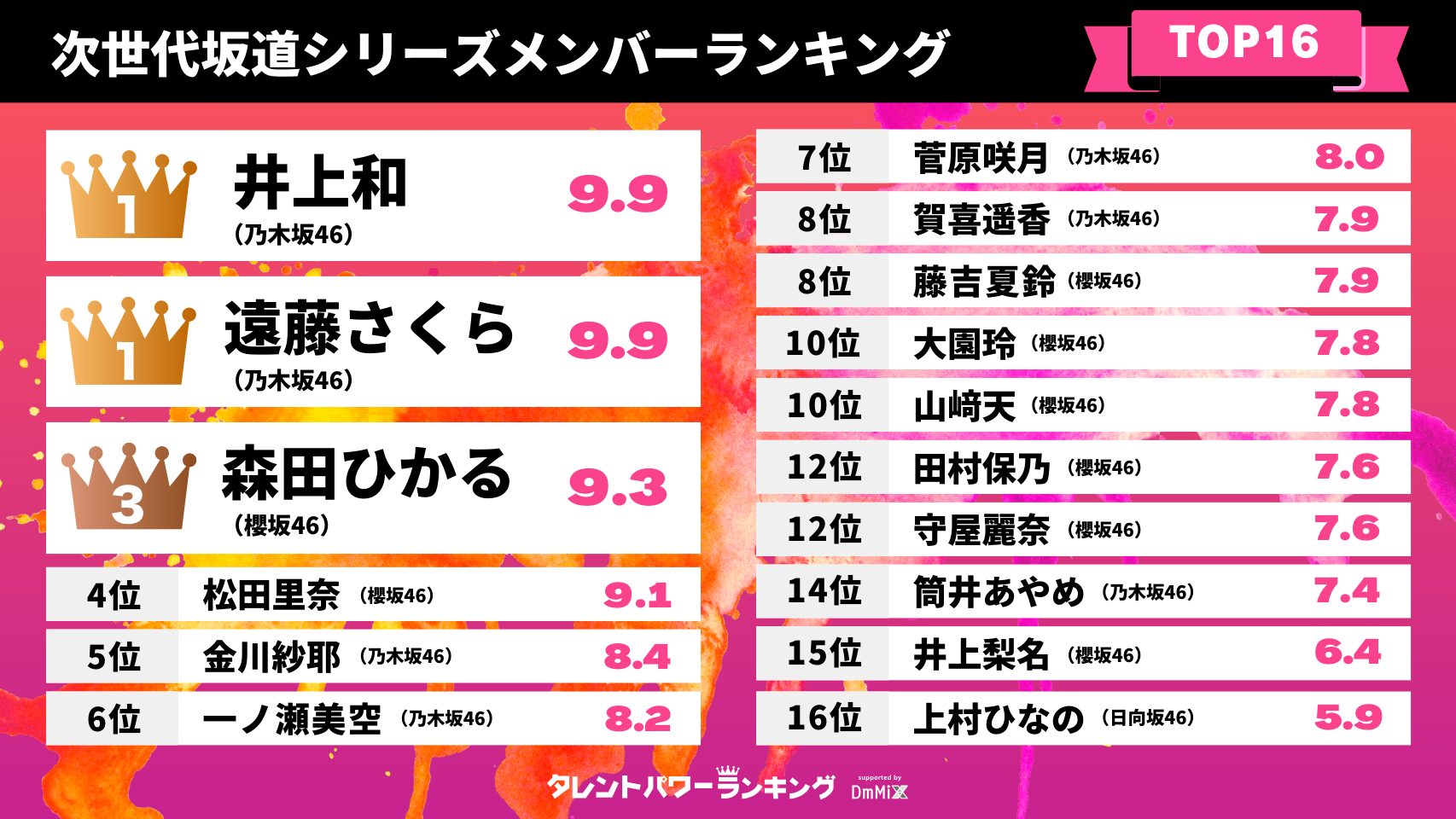 次世代坂道シリーズメンバーTOP16