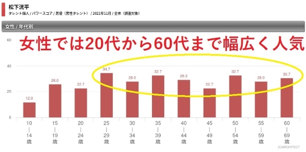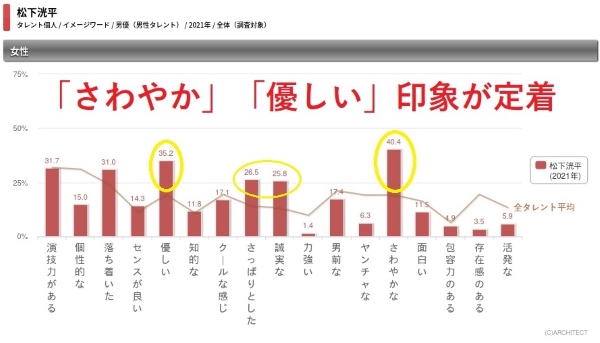 タレントパワースコアでは幅広い女性に大人気!「さわやか」で「優しい」イメージが定着
