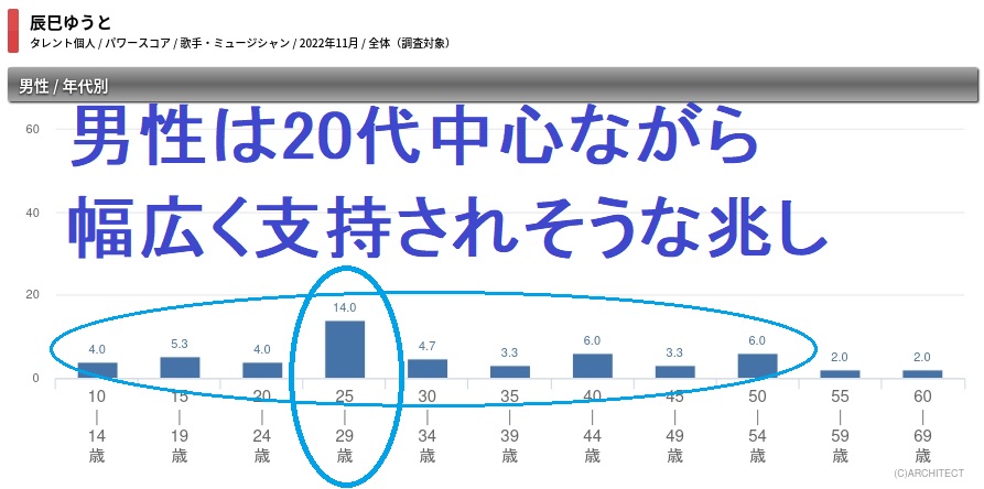 パワースコア_2022年11月調査 (全体)タレントパワースコアでは、幅広い年齢層の男性から支持される兆しあり