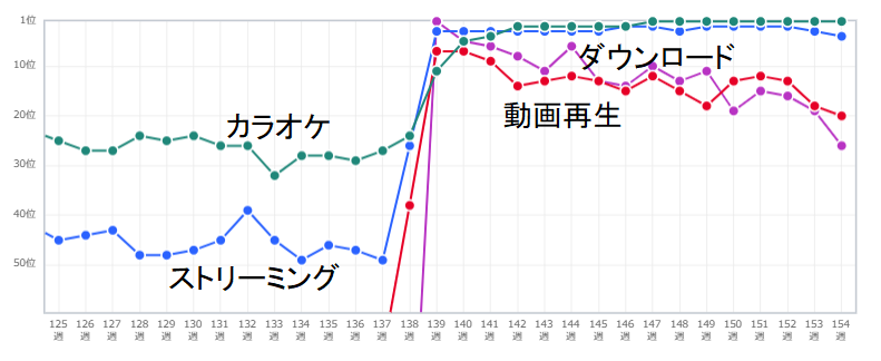 ビルボードチャートで見た「カラオケ」「ストリーミング」「ダウンロード」「動画再生」の22年末→23年始の推移