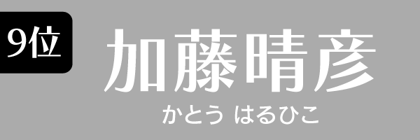 | 9位 | 加藤晴彦 | 13.4 | 2015年2月 |