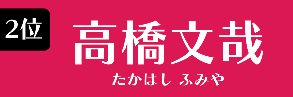 もうひとりの2位は俳優の高橋文哉です。1月から『ぐるぐるナインティナイン』の“ゴチになります”コーナーの新レギュラーとして登場して注目を集めました。