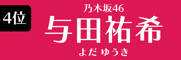 4位は乃木坂46の与田祐希です。20代歌手・ミュージシャン部門では1位の伸び率でした(2位は櫻坂46の守屋麗奈)。ヒロインを演じた2023年公開の映画『OUT』が今年2月17日からNetflixで独占配信されて話題を集めました。