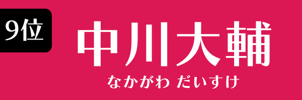 9位には俳優の中川大輔がランクインしました。1月期に『パティスリーMON』(テレ東系)、『彼女と彼氏の明るい未来』(MBSほか)の2本の連ドラに出演したことが上昇要因になりました。
