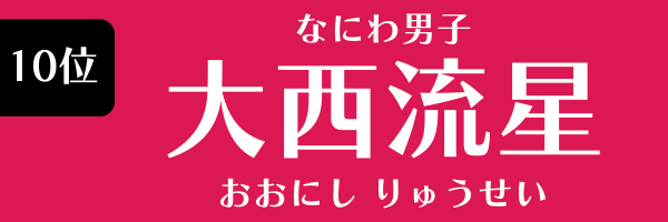10位は、なにわ男子の大西流星です。2月10日にはラジオ番組で日本化粧品検定1級に合格したことを報告しました。2月15日からなにわ男子が出演する森永製菓「ハイチュウ」の新CM「日本から世界へ(12粒)」編・「日本から世界へ(プレミアム)」のオンエアが開始されています。