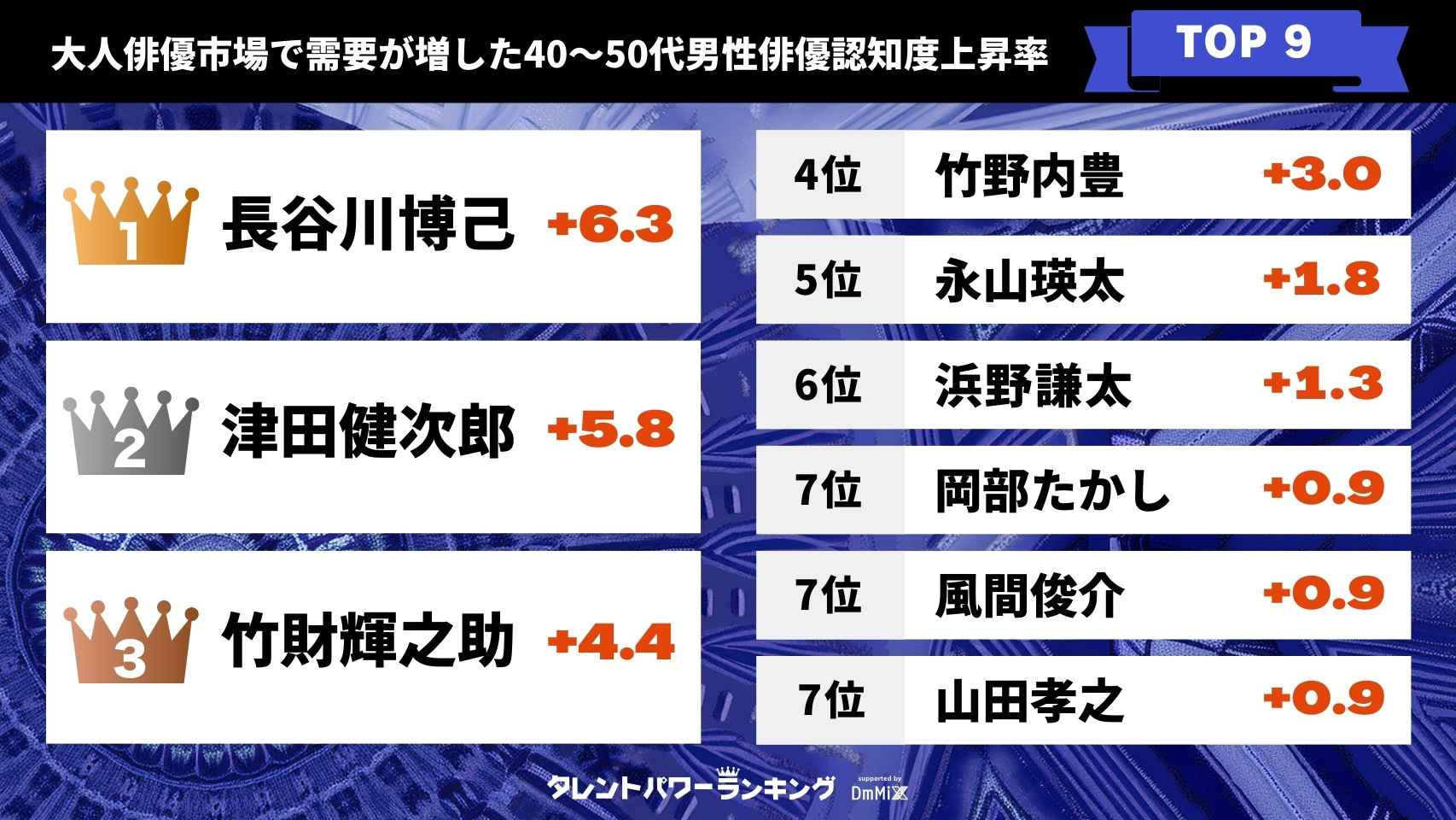 竹財輝之助・津田健次郎がトップ3にランクイン