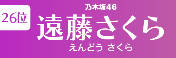 | 26位 | 遠藤さくら(乃木坂46) | 7.2 | 2023年2月度 |