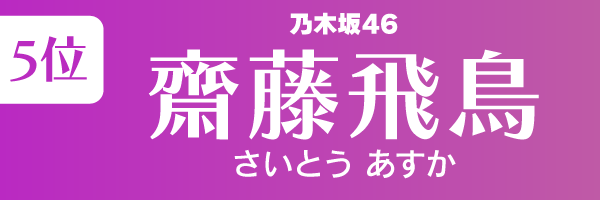 坂道グループの人気メンバーランキング第5位は、齋藤飛鳥です。
