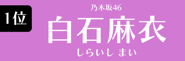そして、1位は昨年に続いて、白石麻衣です。2011年、乃木坂46の1期生オーディションに合格。2013年7月に発売された6thシングル『ガールズルール』で初センター。2020年に乃木坂46を卒業しました。