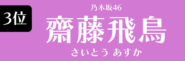 第3位:齋藤飛鳥(乃木坂46)