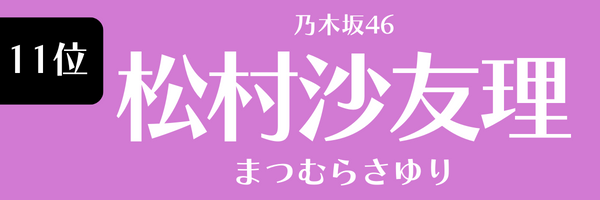 | 11位 | 松村沙友理 | 13.3 | 2023年11月度 |