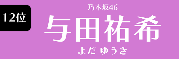 | 12位 | 与田祐希(乃木坂46) | 12.8 | 2024年2月度 |
