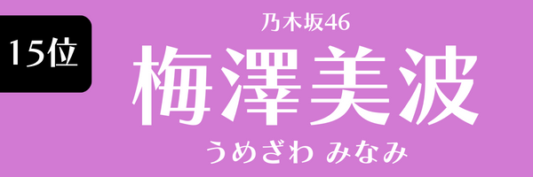 | 15位 | 梅澤美波(乃木坂46) | 10.5 | 2024年2月度 |