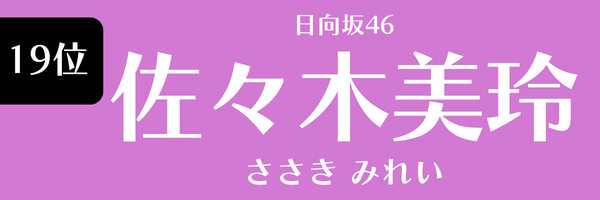 | 19位 | 佐々木美玲(日向坂46) | 9.8 | 2024年2月度 |