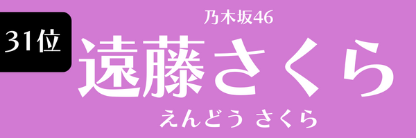 | 31位 | 遠藤さくら(乃木坂46) | 8.6 | 2024年2月度 |