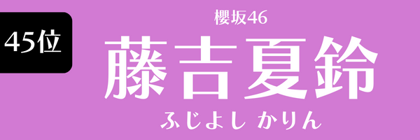 もうひとりの45位は、藤吉夏鈴(櫻坂46)です。2018年に「坂道合同新規メンバー募集オーディション」合格。2期生としての活動を開始しました。