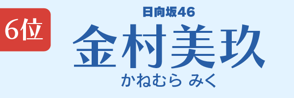 | 6位 | 金村美玖(日向坂46) | 6.2 | 2022年2月 |