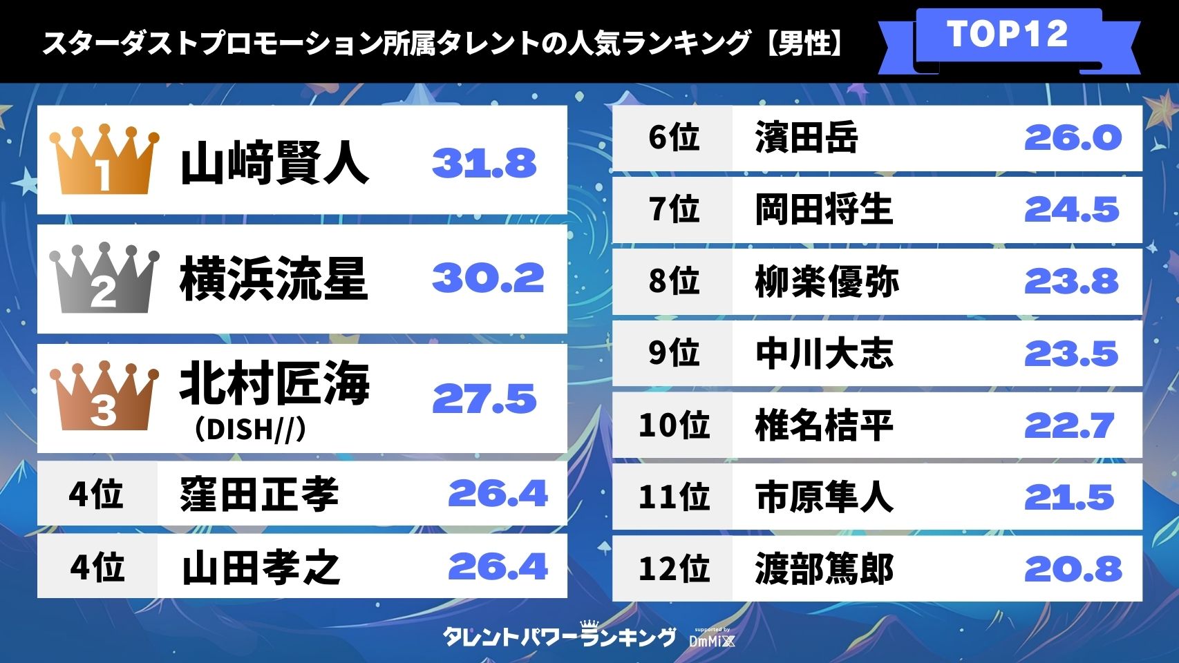 スターダストプロモーション所属タレントの人気ランキング【男性】